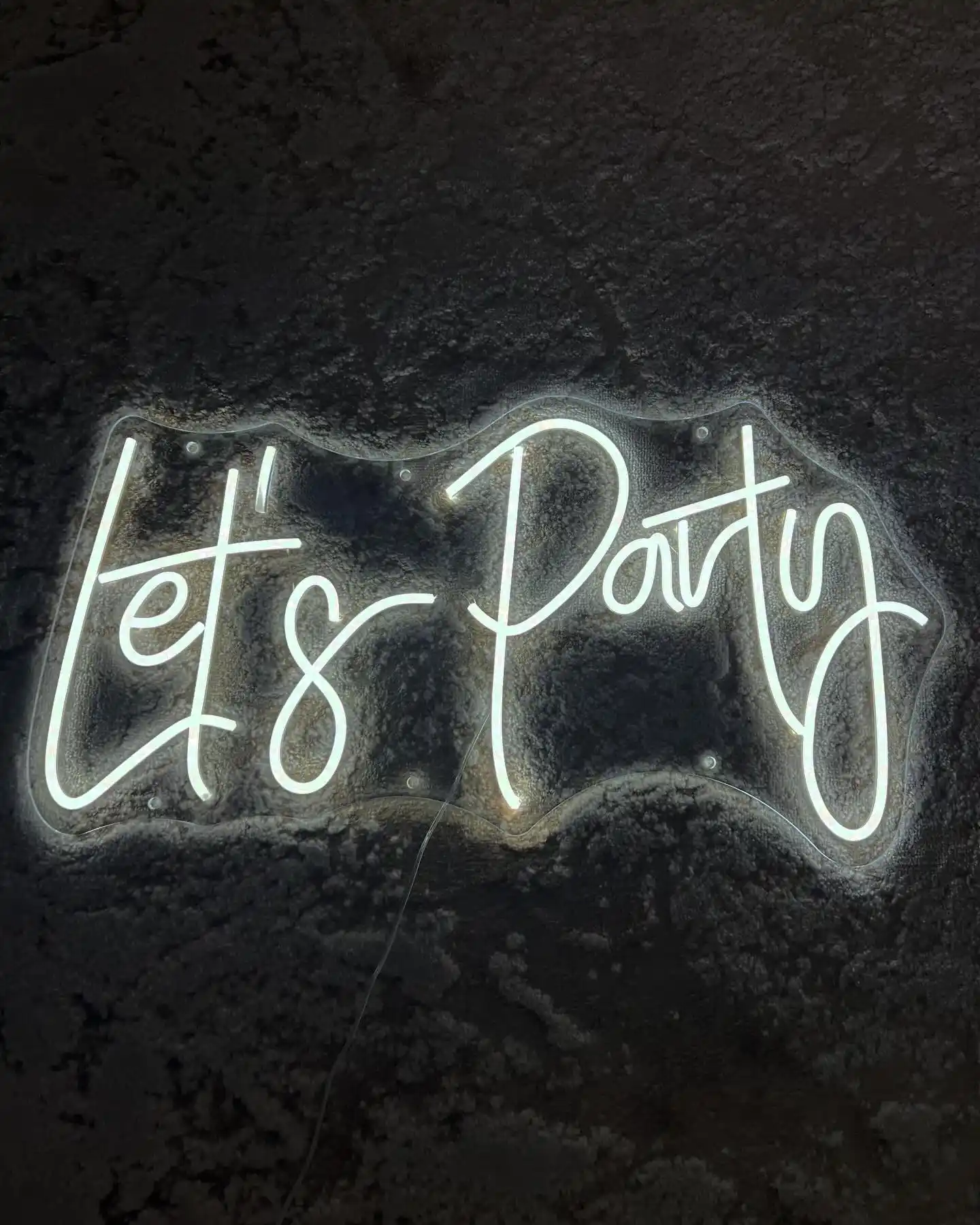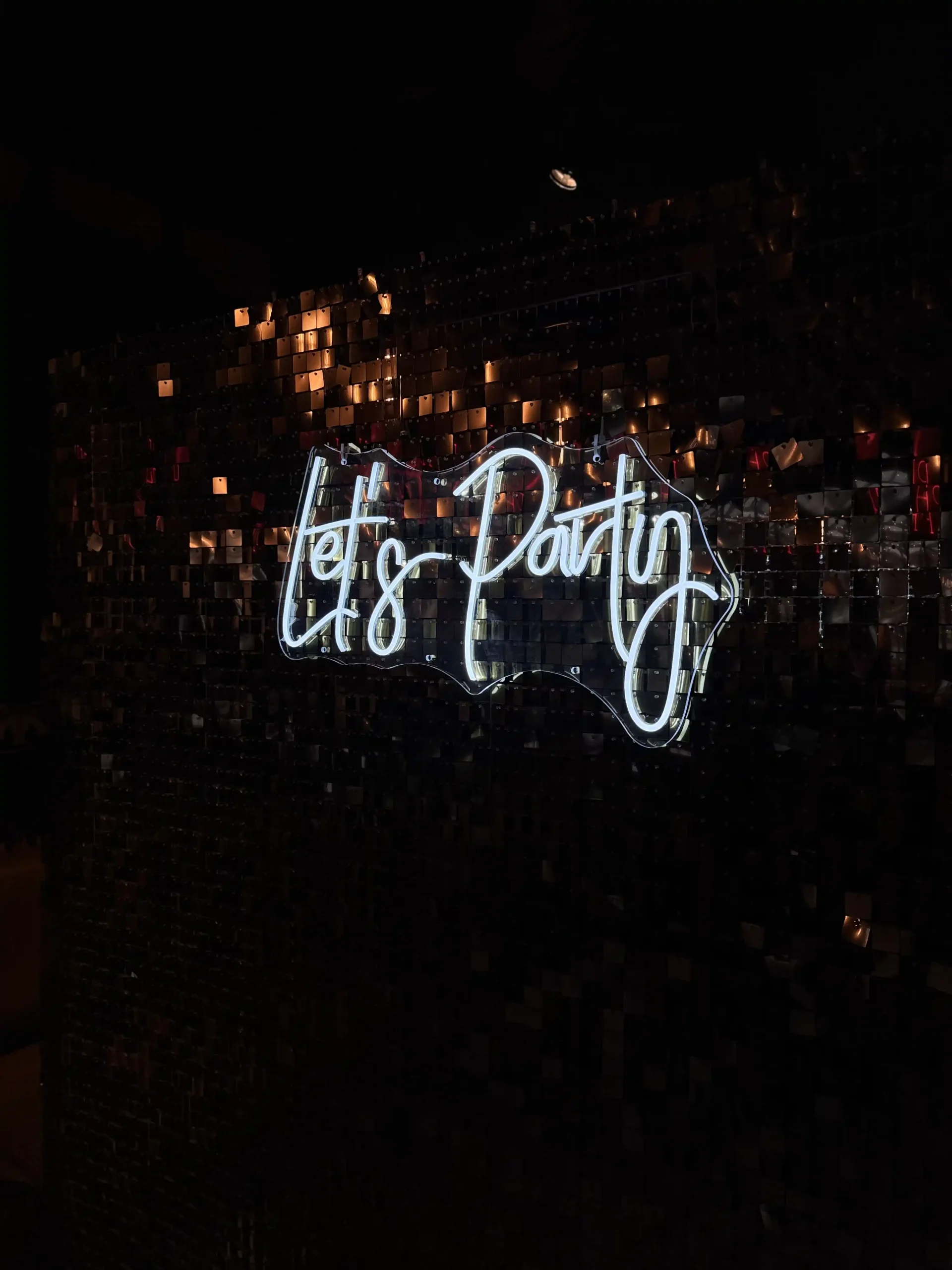 Bring instant energy to your event styling with our “Let’s Party” neon sign. Bold, fun and high-impact, this piece is designed for celebrations where the focus is on atmosphere, colour and good vibes.