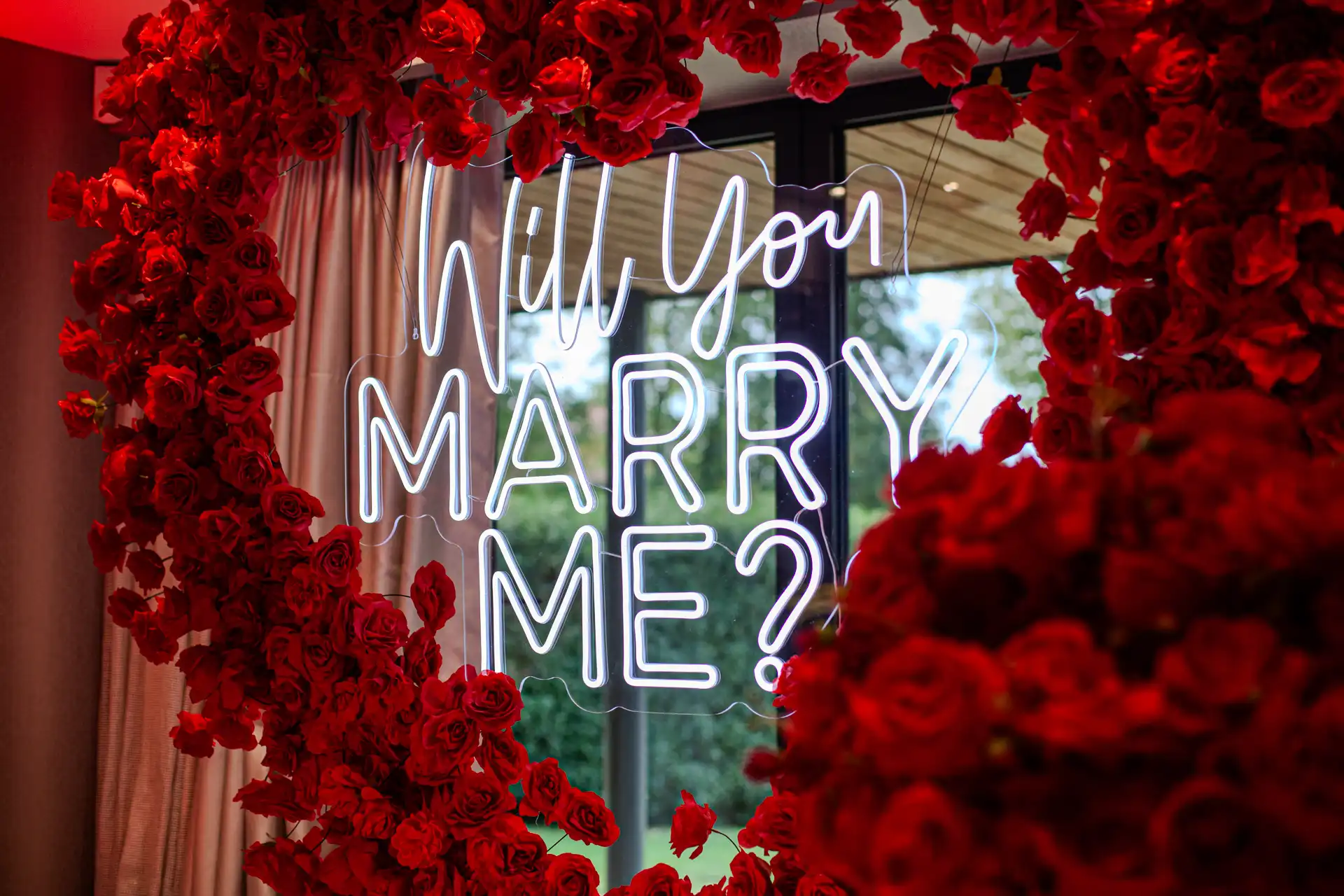 Neon Signage “Will You Marry Me?” to create a captivating focal point.