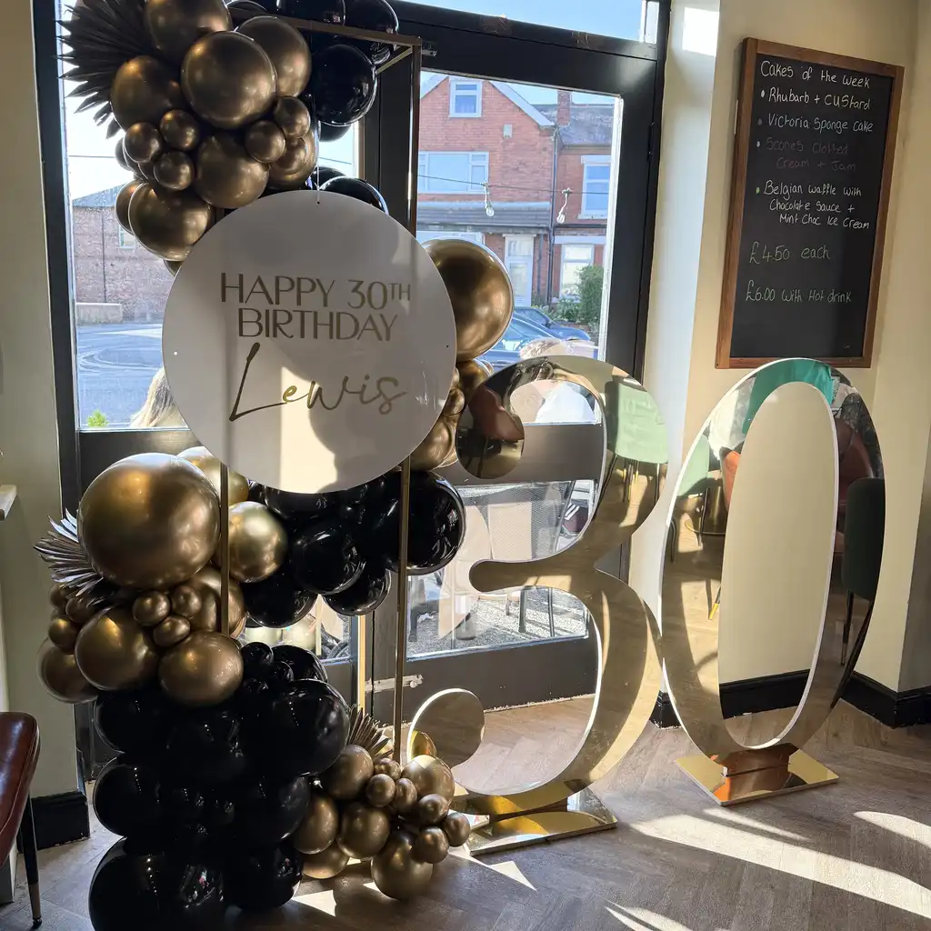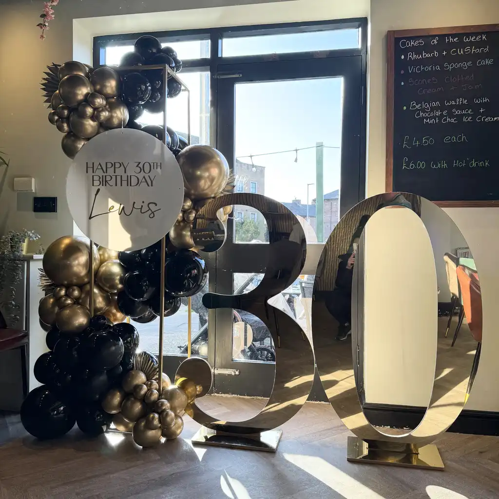 The Golden Edit is a refined and contemporary display designed to highlight milestone moments with understated elegance. Featuring gold acrylic numbers and a cascading balloon plinth, this set-up delivers a polished look that feels modern, stylish and considered.