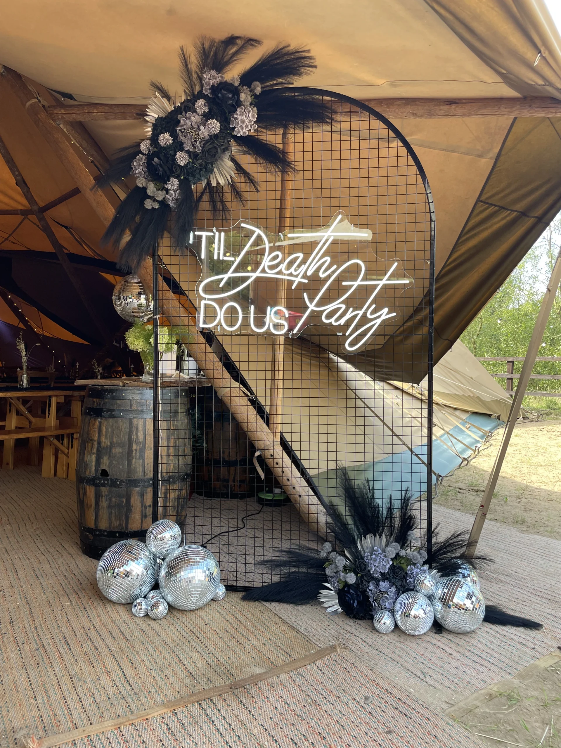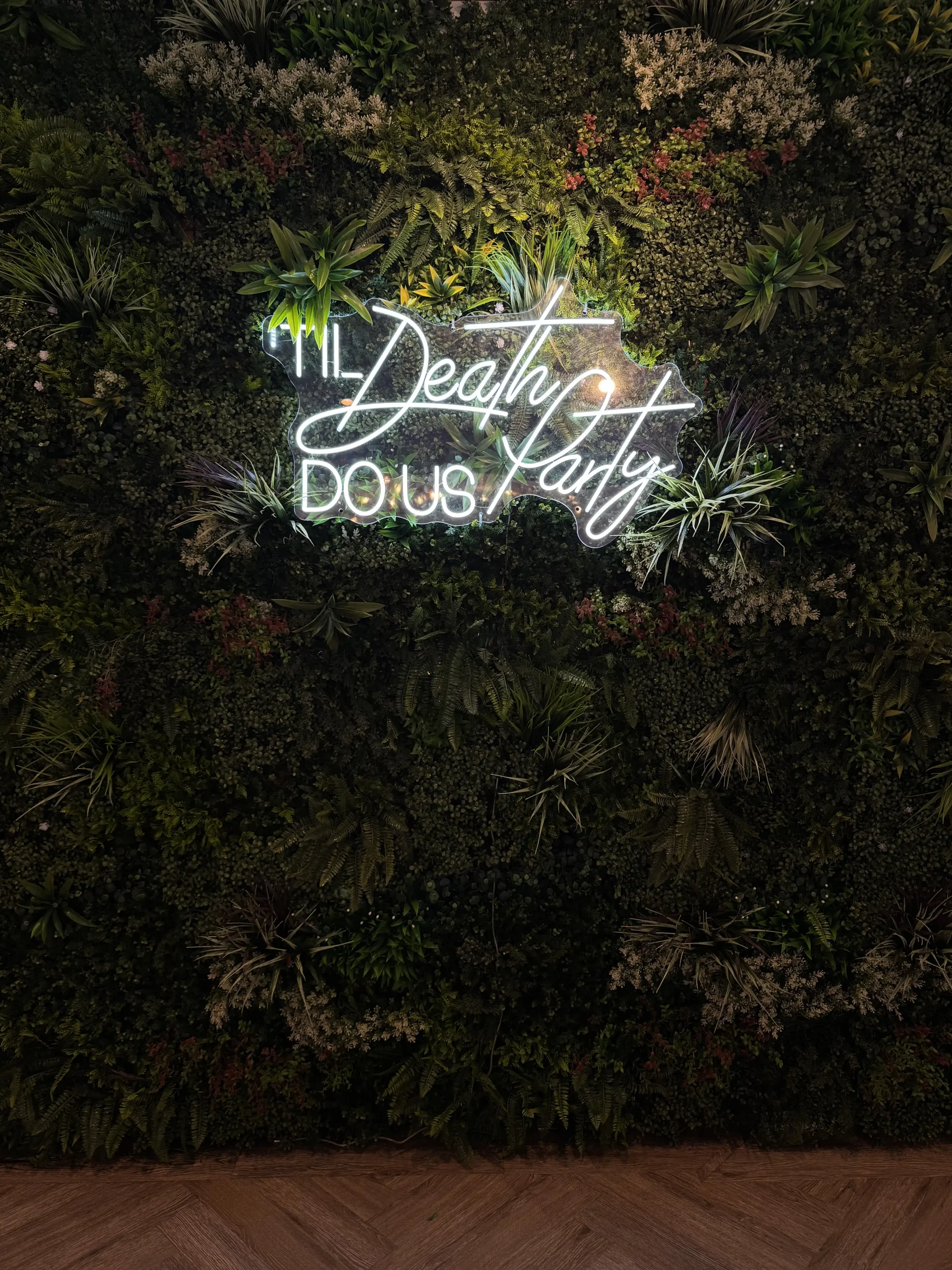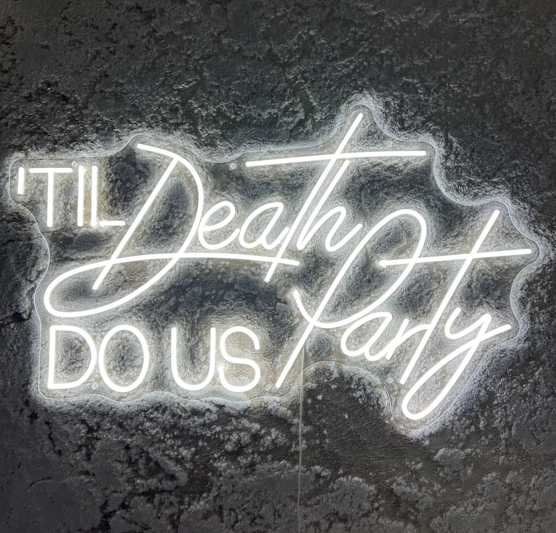 Bring bold personality to your event with our TIL Death Do Us Party neon sign. Designed for modern, party-led celebrations, this statement prop adds a playful edge while keeping a clean, contemporary look with its cool white glow.