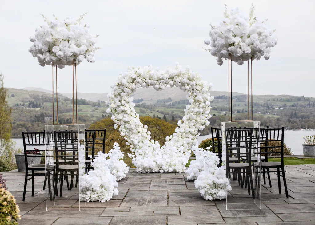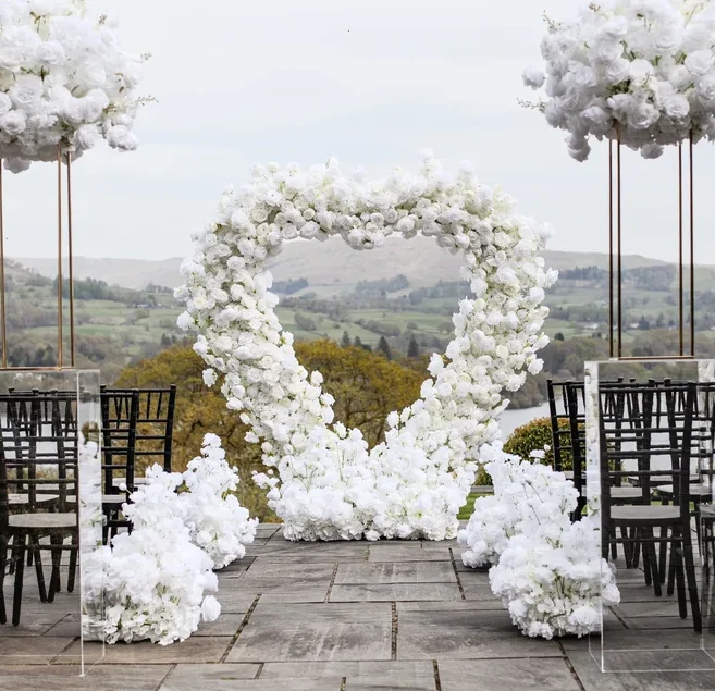 Add a refined touch to your aisle or walkway with our White Rose & Ivory Aisle Runners. These elegant rectangular silk floral arrangements are designed to create a beautifully styled pathway, perfect for guiding guests and enhancing your overall setup.